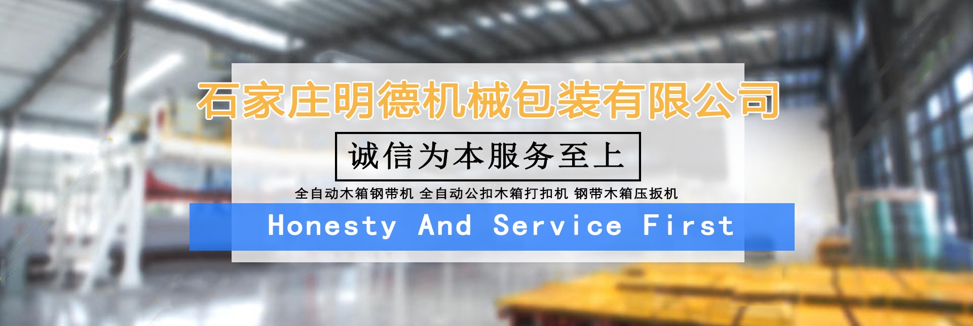 石家莊明德包裝機(jī)械有限公司,是國(guó)內(nèi)專業(yè)生產(chǎn)木箱雙條鋼帶機(jī)、美式托盤打釘機(jī)械、托盤刨槽機(jī)、倒角機(jī)、木包裝箱、木托盤的生產(chǎn)廠家,目前擁有廠房3000多平方米,自動(dòng)化生產(chǎn)設(shè)備數(shù)十套。 公司下轄包裝機(jī)械事業(yè)部,主要生產(chǎn)新型全自動(dòng)木箱鋼帶機(jī)、全自動(dòng)(半自動(dòng))木箱鎖扣機(jī)、折疊鋼帶箱機(jī)械、鋼帶箱壓板機(jī)、美式托盤自動(dòng)打釘機(jī)、托盤刨槽機(jī)、倒角機(jī)等相關(guān)鋼帶木箱機(jī)械、木工機(jī)械、配套產(chǎn)品,設(shè)備主體部分由高品質(zhì)機(jī)械和高精度模具組成,液壓系統(tǒng)、伺服系統(tǒng)和低壓配電單元的主要元器件,均選用西門子、施耐德等國(guó)際和國(guó)內(nèi)產(chǎn)品,大大提升了產(chǎn)品質(zhì)量,設(shè)備長(zhǎng)時(shí)間運(yùn)行穩(wěn)定可靠,獲得了用戶的一致好評(píng)。 公司下轄包裝制品事業(yè)部,主要生產(chǎn)各種實(shí)木木箱、膠合板鋼帶木箱和實(shí)木熏蒸托盤、歐標(biāo)托盤、美標(biāo)托盤、亞標(biāo)托盤及相關(guān)配套產(chǎn)品,木箱和托盤均選用優(yōu)質(zhì)九厘板材和俄羅斯原木作為原材料,從生產(chǎn)制造、成品組裝、出廠質(zhì)檢到送貨上門,售后服務(wù)等,做到一條龍服務(wù),始終堅(jiān)持“把質(zhì)量做到更好,把成本降到更低,把實(shí)惠讓給客戶“的經(jīng)營(yíng)原則。